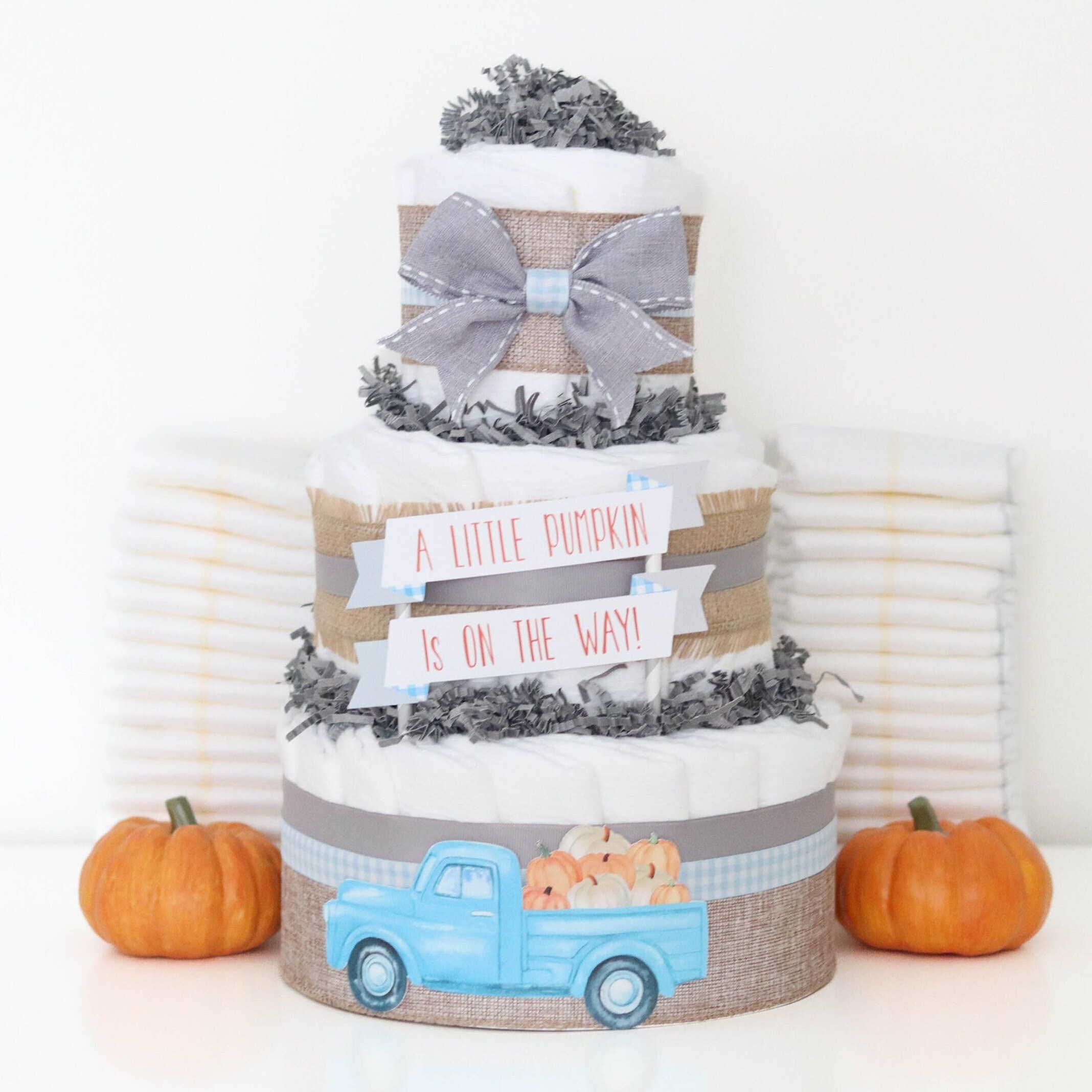 Pumpkin Baby Shower Decor Blue Vintage Truck Diaper Cake Little Pumpkin Is On The Way Baby Shower Baby Boy Diaper Cake Fall Baby Shower Etsy Sweden